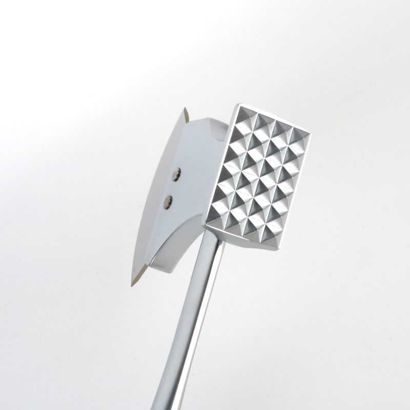 ابزار همه کاره که هم بهعنوان نرمکننده گوشت آلیاژ روی و هم بهعنوان دستگاه برش پیتزا عمل میکند، دارای طول 25 سانتیمتر است. قسمت جلویی به دو سطح کاربردی تقسیم میشود: یکی برای نرمکننده گوشت و دیگری برای برش پیتزا. پلاستیک نیز برای کاهش درد کف دست و افزایش راحتی در استفاده طولانی مدت به دم دسته اضافه می شود.